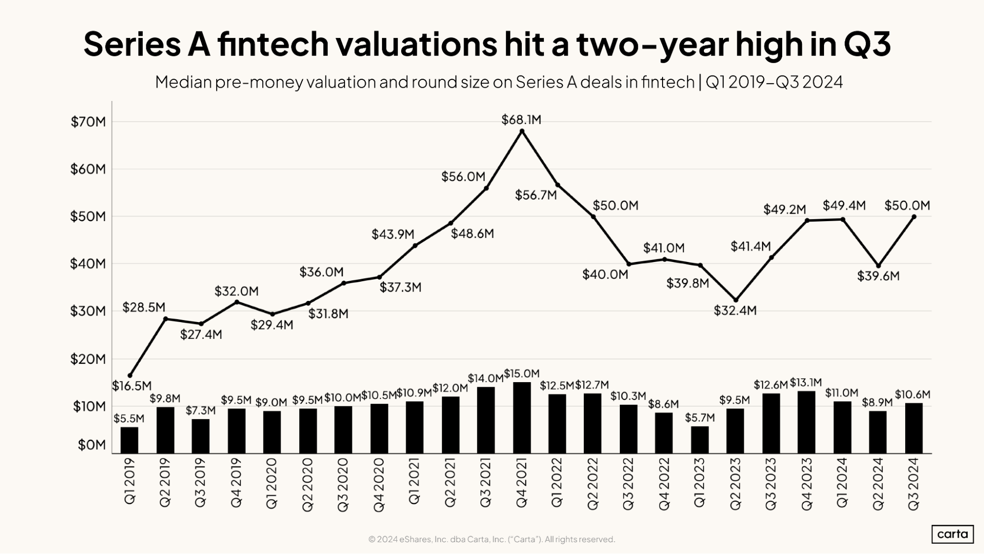 And fundraising is trending up, with bright spots like higher Series A valuations: