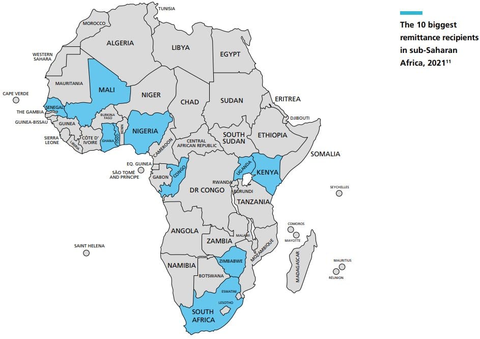 The biggest 10 remittance recipients in Sub-saharan Africa