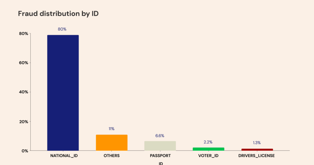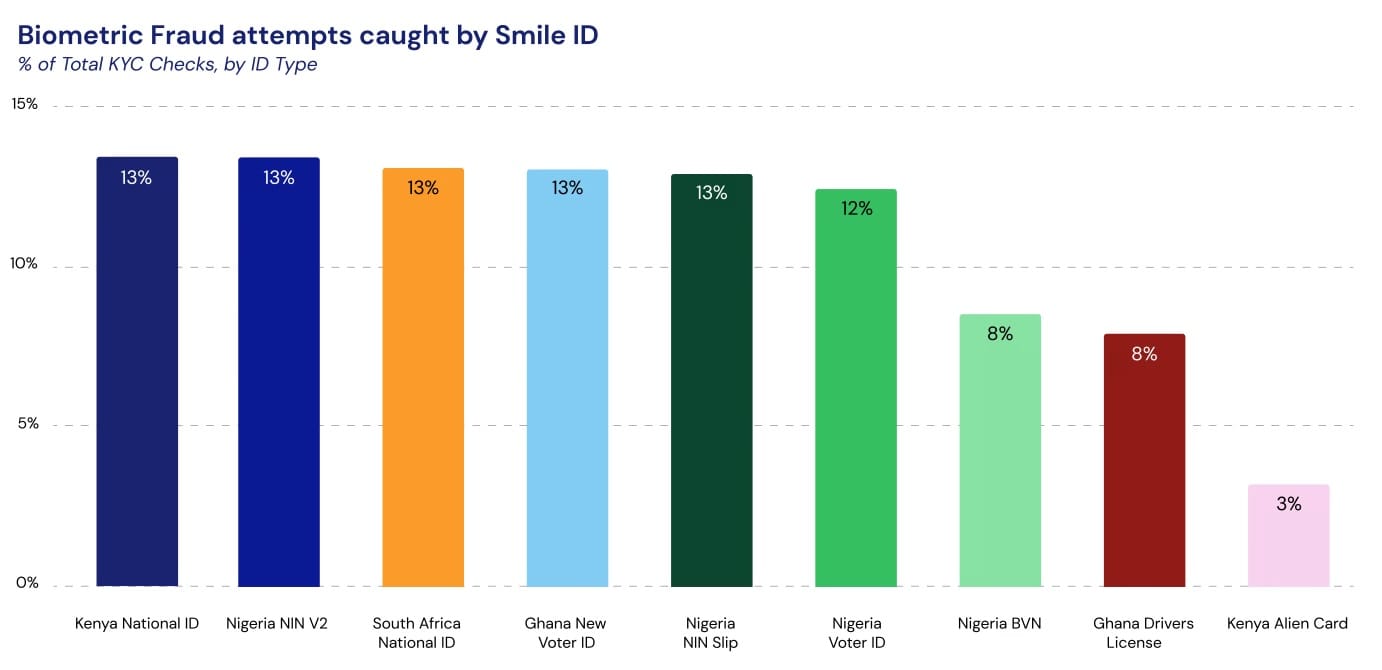 Biometric fraud attempts caught by Smile ID by identification documentation type as a percentage of total KCY checks