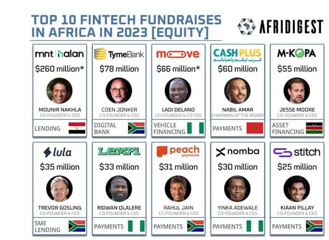Top 10 Fintech Fundraises in Africa in 2023(Equity).