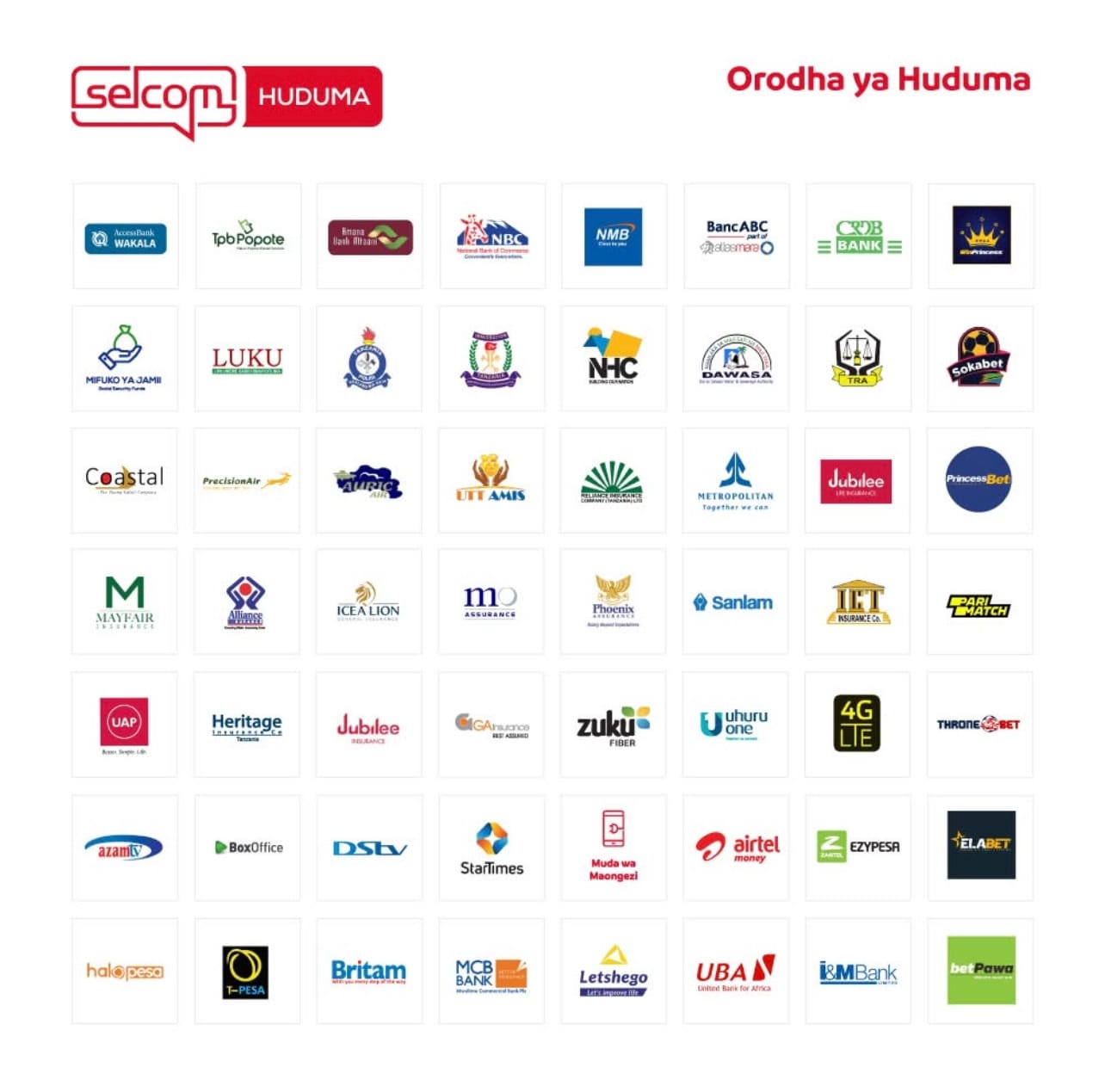 Selcom has integrated with all banks and billers in Tanzania.