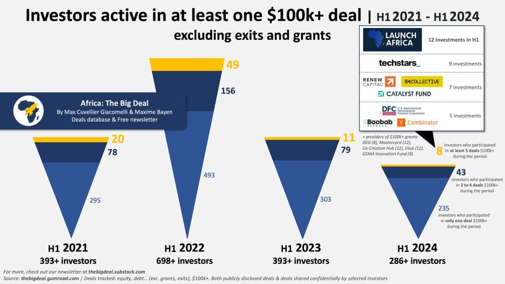 Investors active in at least one $100k+ deal | H12021 - H12024 excluding exits and grants.
