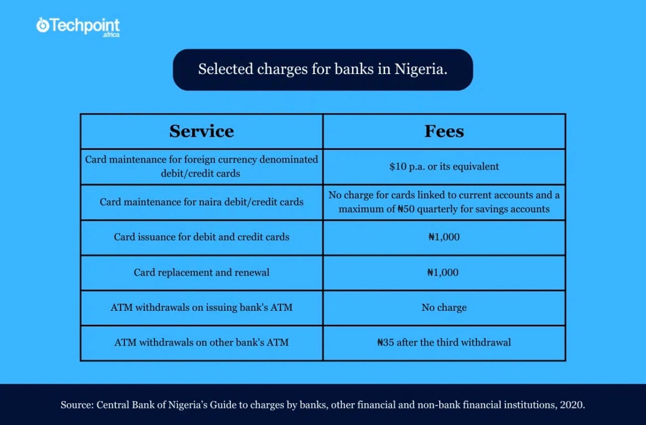 Selected charges for banks in Nigeria
