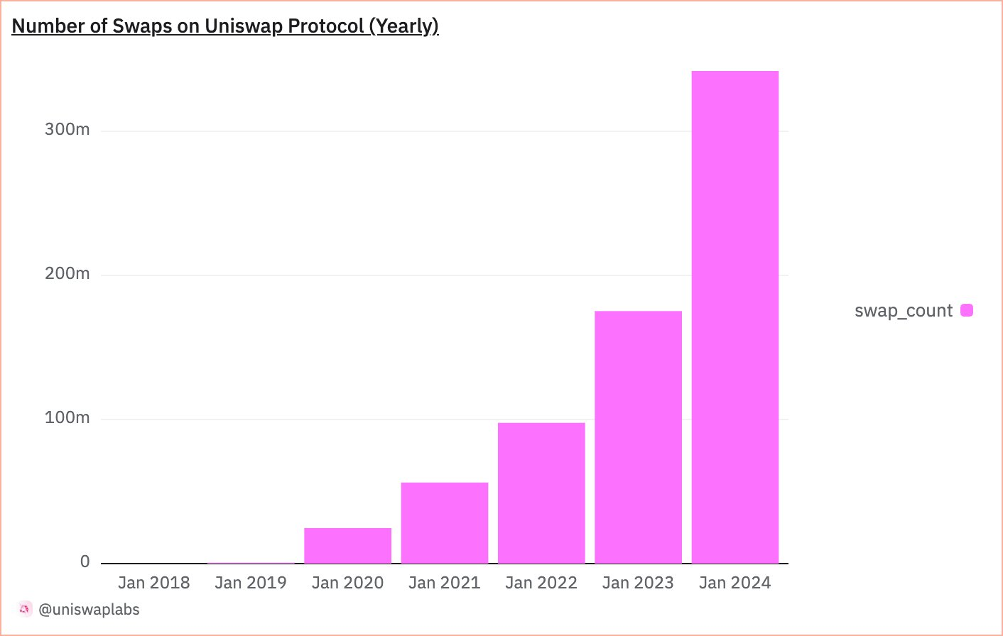 DeFi platform Uniswap hit record transaction volume for the year, despite the crypto winter (source):