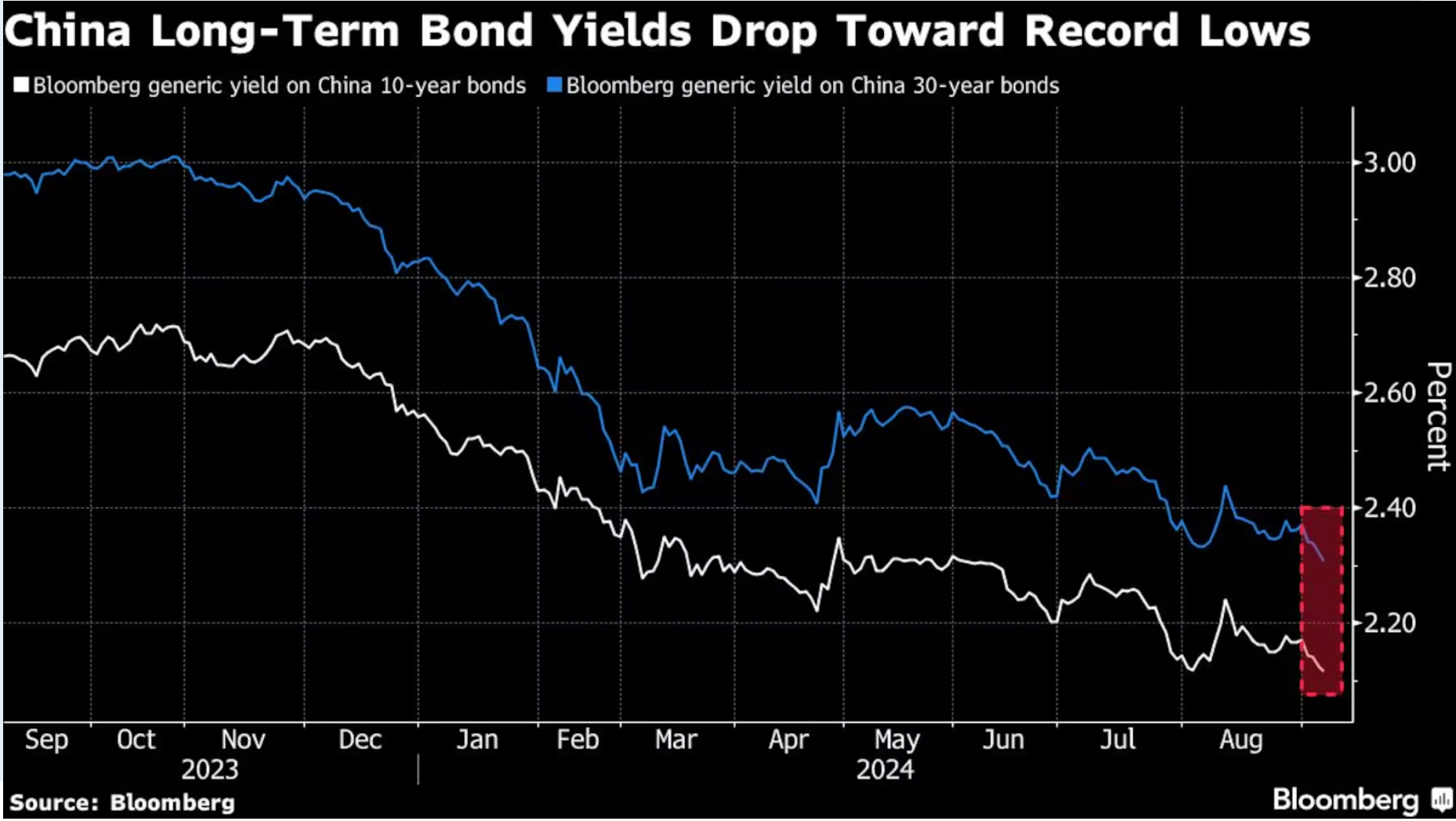 China's 30-year treasury yield hit a record low (TWIF - China 9/5)