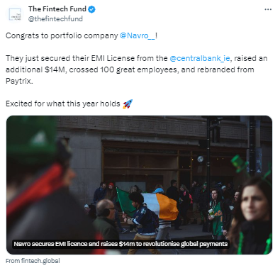 • Navro*, formerly known as Paytrix, raised $14 million in its Series A.