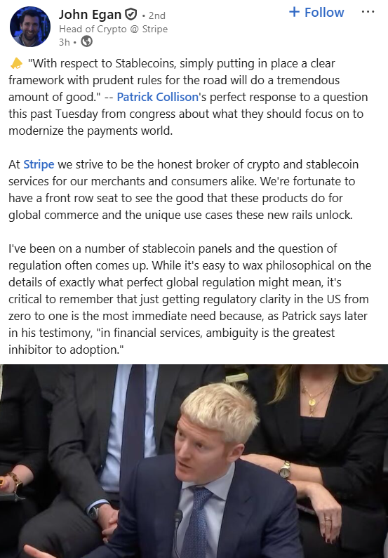 The headline today refers to new guidance issued this week by the OCC, which could pave the way for bank-issued stablecoins in the US, as well as for banks to custody crypto assets and participate in network node verification. So your bitcoin and solana holdings could soon be with Citi or JP Morgan.