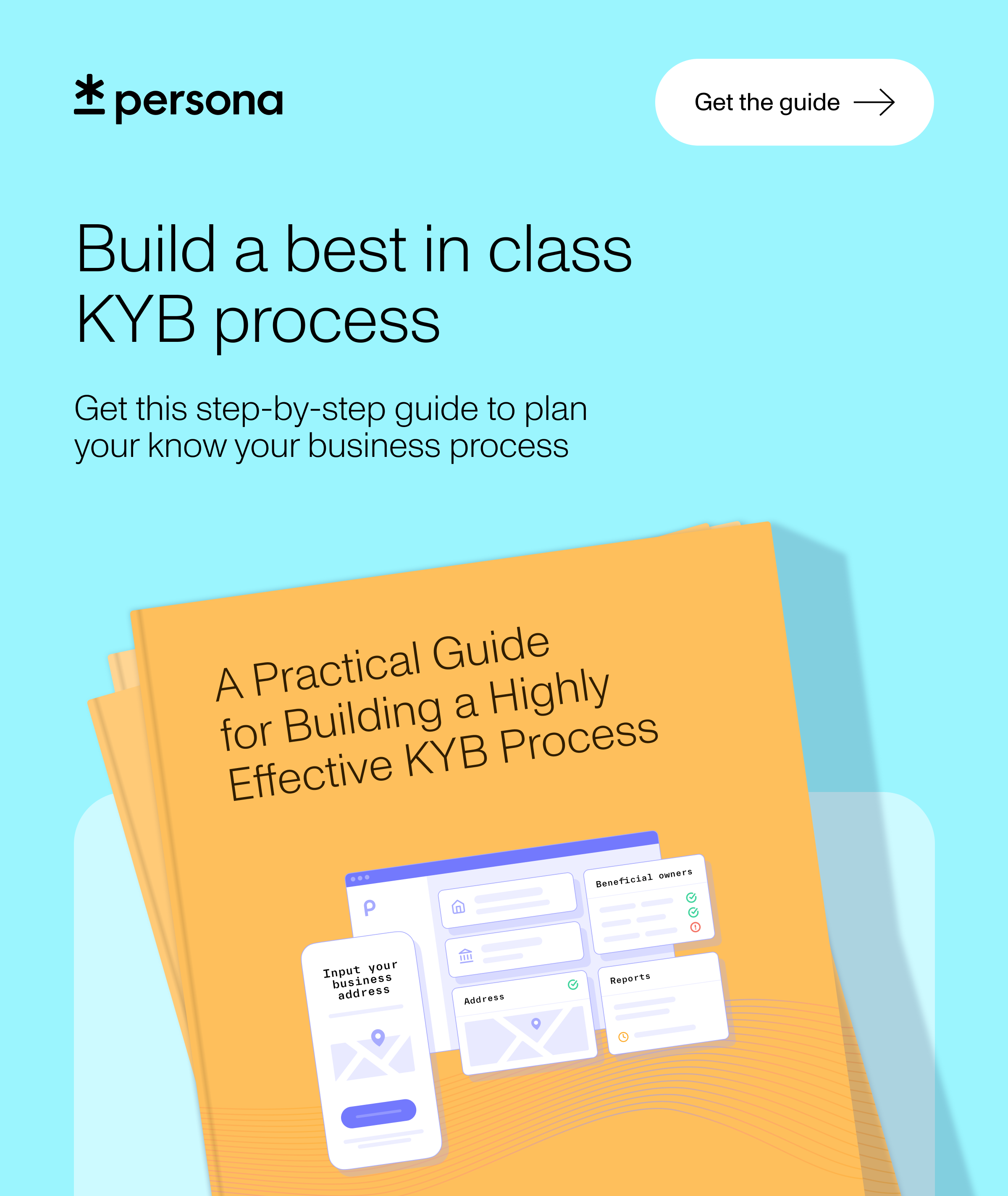 Manual Know Your Business (KYB) processes slow down onboarding and open the door to fraud. Download Persona’s latest guide to learn how to modernize your KYB and KYC workflows to onboard users faster, stay compliant, and build trust. Download the guide today.
