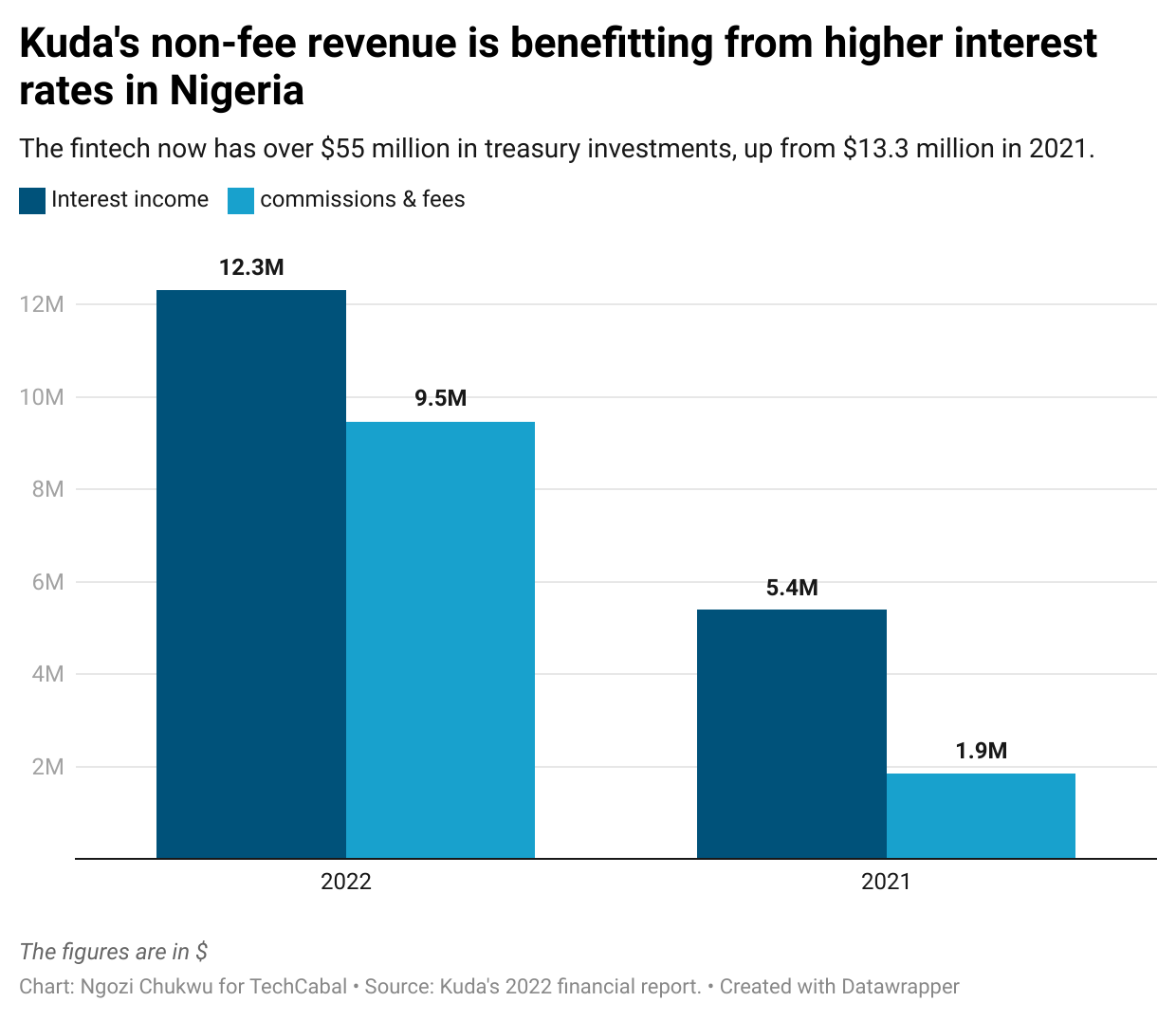 Kuda's non-fee revenue is benefitting from higher interest rates in Nigeria.
