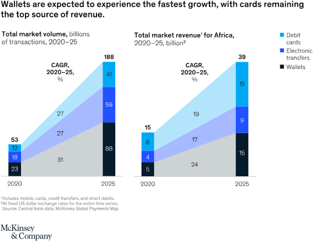 Africa's electronic-payments market is expected to grow by 152 percent from 2020 to 2025.