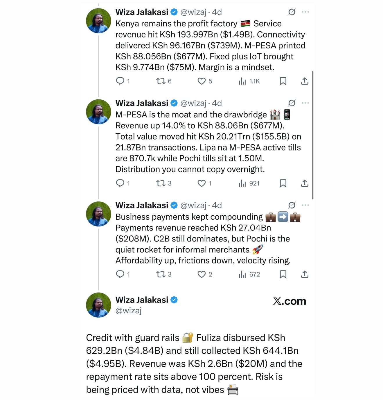 • M-PESA moved $155.5B, earned $677M, and served 2.3M+ merchants, while Fuliza lent $4.8B with full repayment; making Safaricom’s fintech ecosystem its strongest competitive moat.