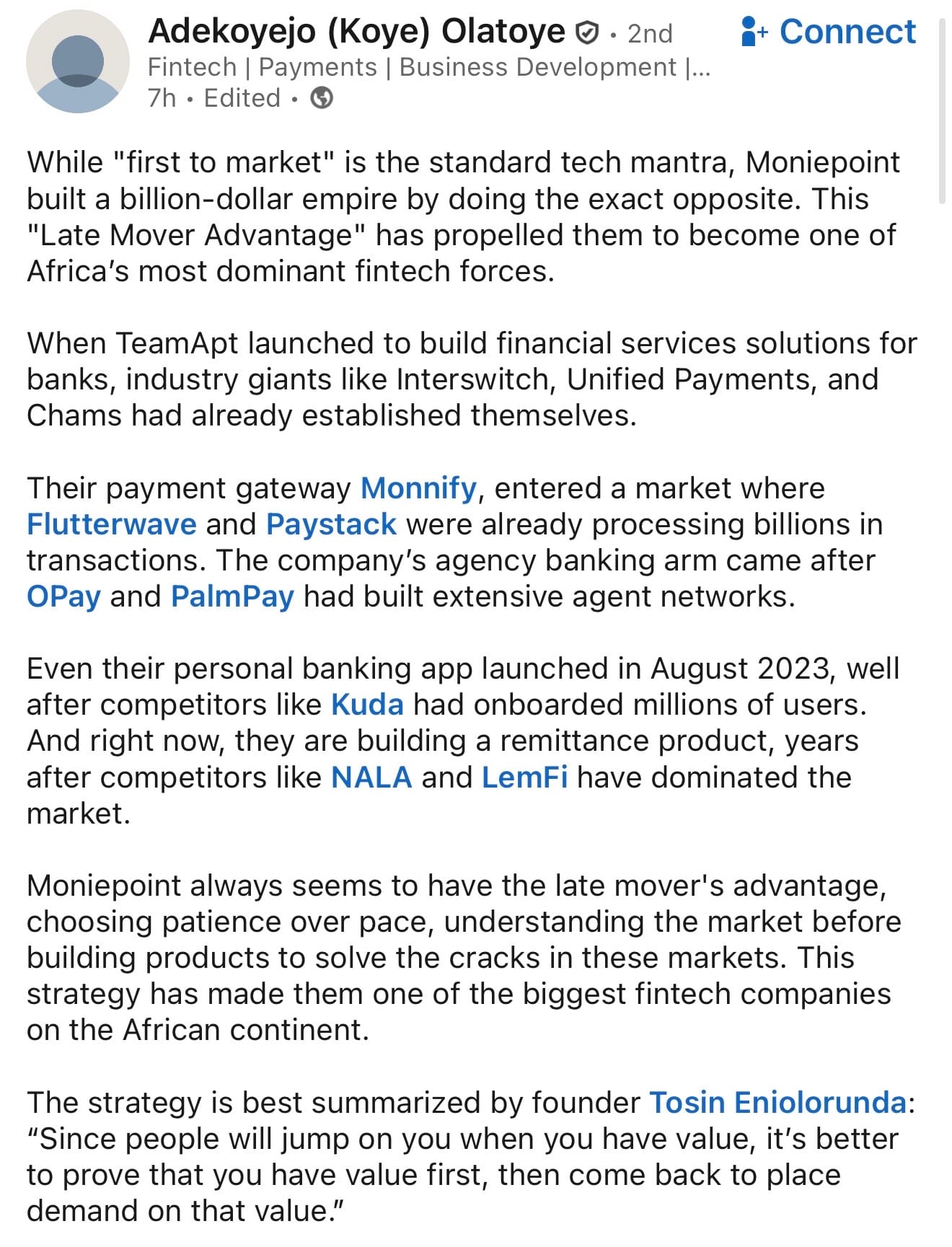 • Moniepoint's Late Mover Advantage.