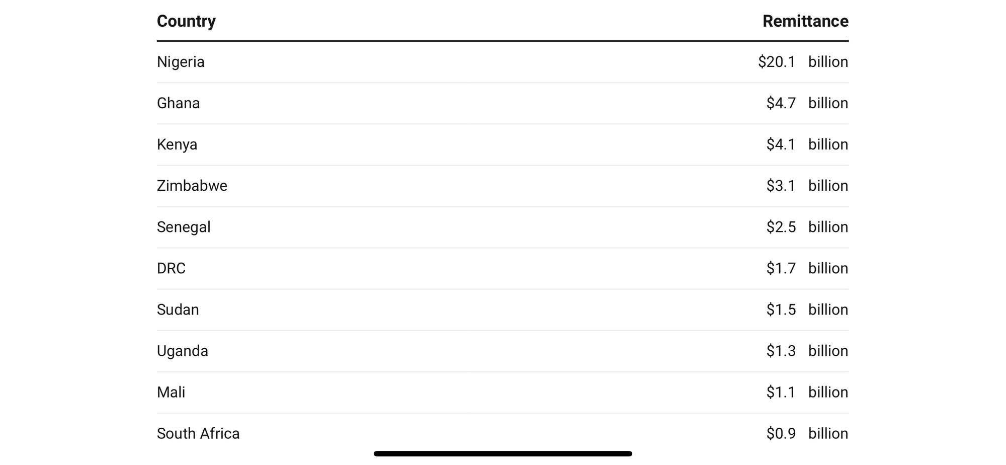 Sub-Saharan Africa's top 10 remittance recipients in 2022