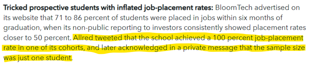 The CFPB issued an order against BloomTech, a fintech provider of income-sharing agreements and student loans, claiming that the startup deceived students about the cost of loans and making false claims about graduates’ hiring rates: