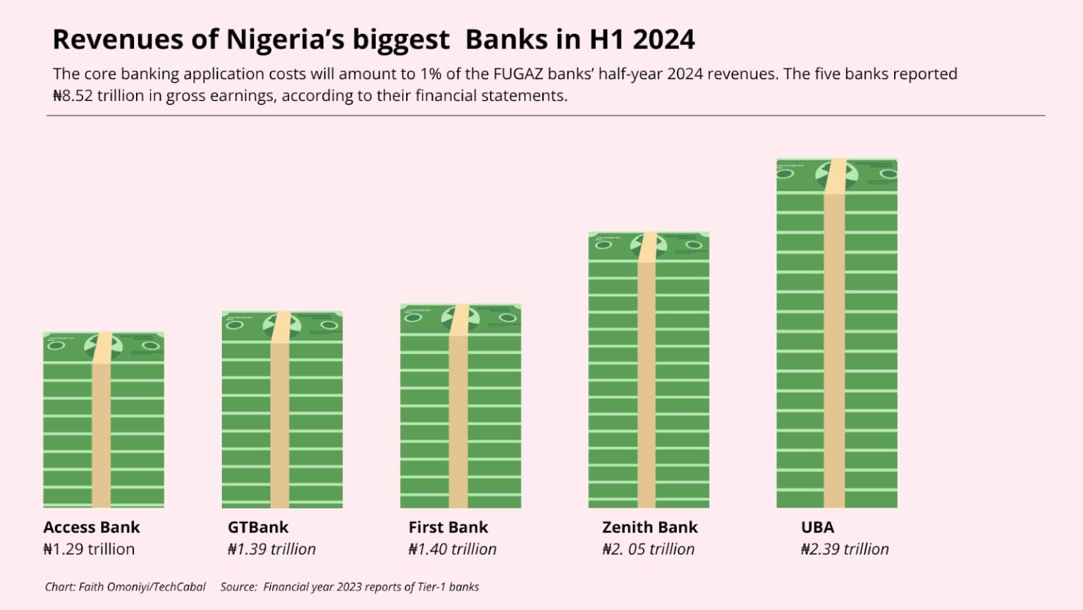 • Since September 2024, at least four Nigerian commercial banks have changed their core banking applications.Nigerian commercial banks spend at least $10 million each year. This suggests that the biggest Nigerian commercial banks; First Bank, UBA, GTBank, Access Bank, and Zenith will spend $50 million annually on their core banking applications.   On the other side, Stanbic Holdings Plc, Kenyaโ€™s sixth-largest bank with a market capitalization of $381 million recently has finalized an upgrade of its core banking application, Temenos 24 (T24 R23)