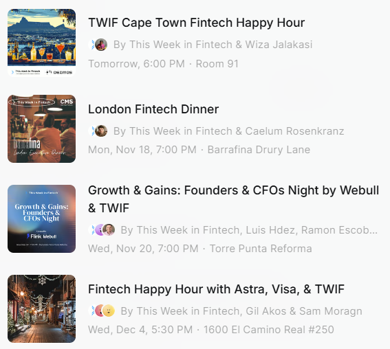 Come meet us in-person at thisweekinfintech.com/events