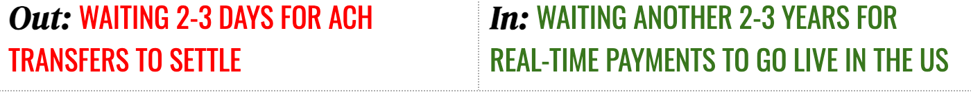 Why did the US need two instant payment networks that will now compete for volume when we’re already one of the last major countries to support real-time payments, you ask? Wouldn’t it make sense to make the two networks interoperable as a means to encourage adoption, given that it will take at least another 2-3 years for all 10,000 banks in the US to implement either one of these systems? Because… yeah, I’m asking too.