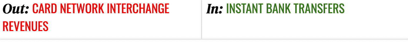 Instant bank transfers pose a bigger threat to card networks’ interchange revenues than ever before. As Michael Simon points out, card networks have been fighting against the emergence of real-time payments in the US by increasing client incentives (discounts on the fees that card schemes charge banks and other players in the payment chain) to encourage network adoption.