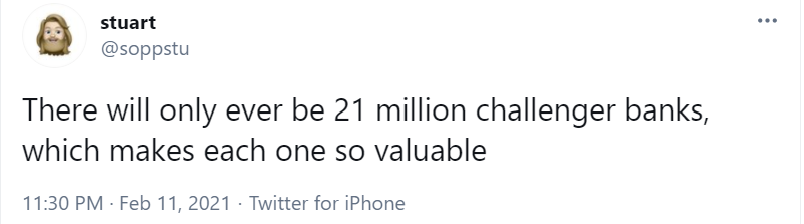 Fintech is subject to the same fads and herd thinking as tech writ-large, as expressed pithily in the tweet below, from Stuart Sopp of Current.
