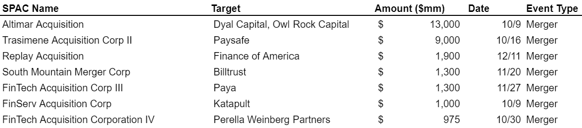 Fintech SPAC activity