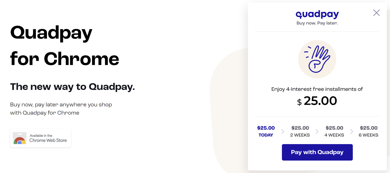 QuadPay’s buy-now-pay-later Chrome extension plugs into any online checkout flow.