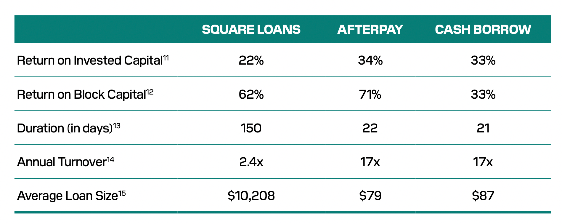Block opened its Q3 2024 shareholder letter with a bold statement: "We’re about to transform 24 million Cash App Cards into a better alternative to credit cards when we launch Afterpay on Cash App Card." The company did not provide many details about what it means in practice, or when to expect this "transformation", but provided a few details about Afterpay and Cash Borrow loans. A common theme is that these are small-amount, short-duration, high-return loans (see the table below).