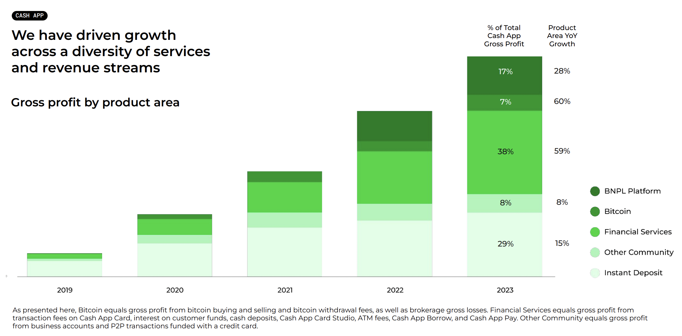 The key drivers of Cash App's gross profit are Cash App Card, Instant Deposits (withdrawal fee), and lending products (Afterpay and Cash Borrow). As the growth in Cash App Card active users and inflows slowed, gross profit growth naturally followed suit. In Q3 2024 gross profit grew 21% YoY, down from 27% YoY in Q3 2023. Thus, Cash App doubling down on lending products seems like a natural reaction to this deceleration. Perhaps, a credit card (or Cash App's equivalent of a credit card) could even expand the company's TAM.