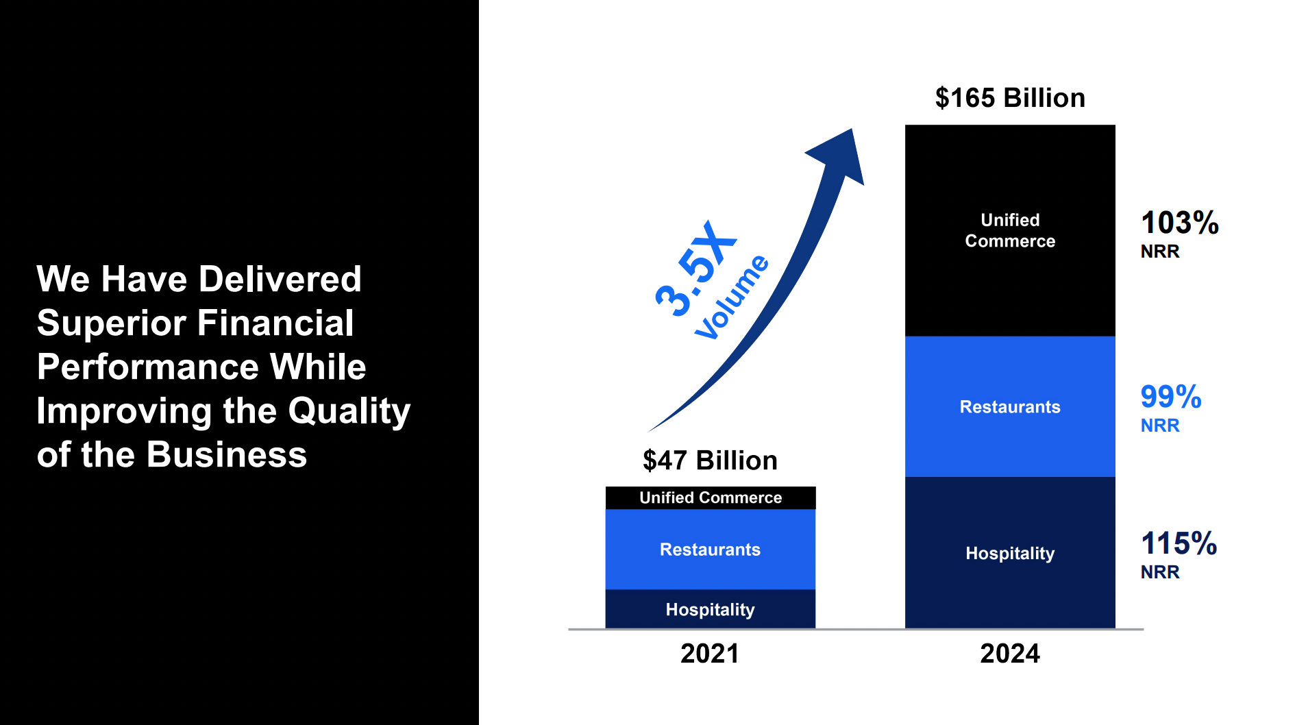 Shift4 (NYSE: FOUR) also held its Investor Day in February 2025, and it’s clear they’ve outgrown their restaurant roots. In 2024, restaurant merchants contributed less than one-third of Shift4’s total processing volume, a sharp contrast to 2021, when serving restaurants was the core business. I would even say that comparing Shift4 to Toast is becoming increasingly outdated. The company has evolved into a full-scale payments player, ready to take on both SMBs and enterprise clients across many industries.
