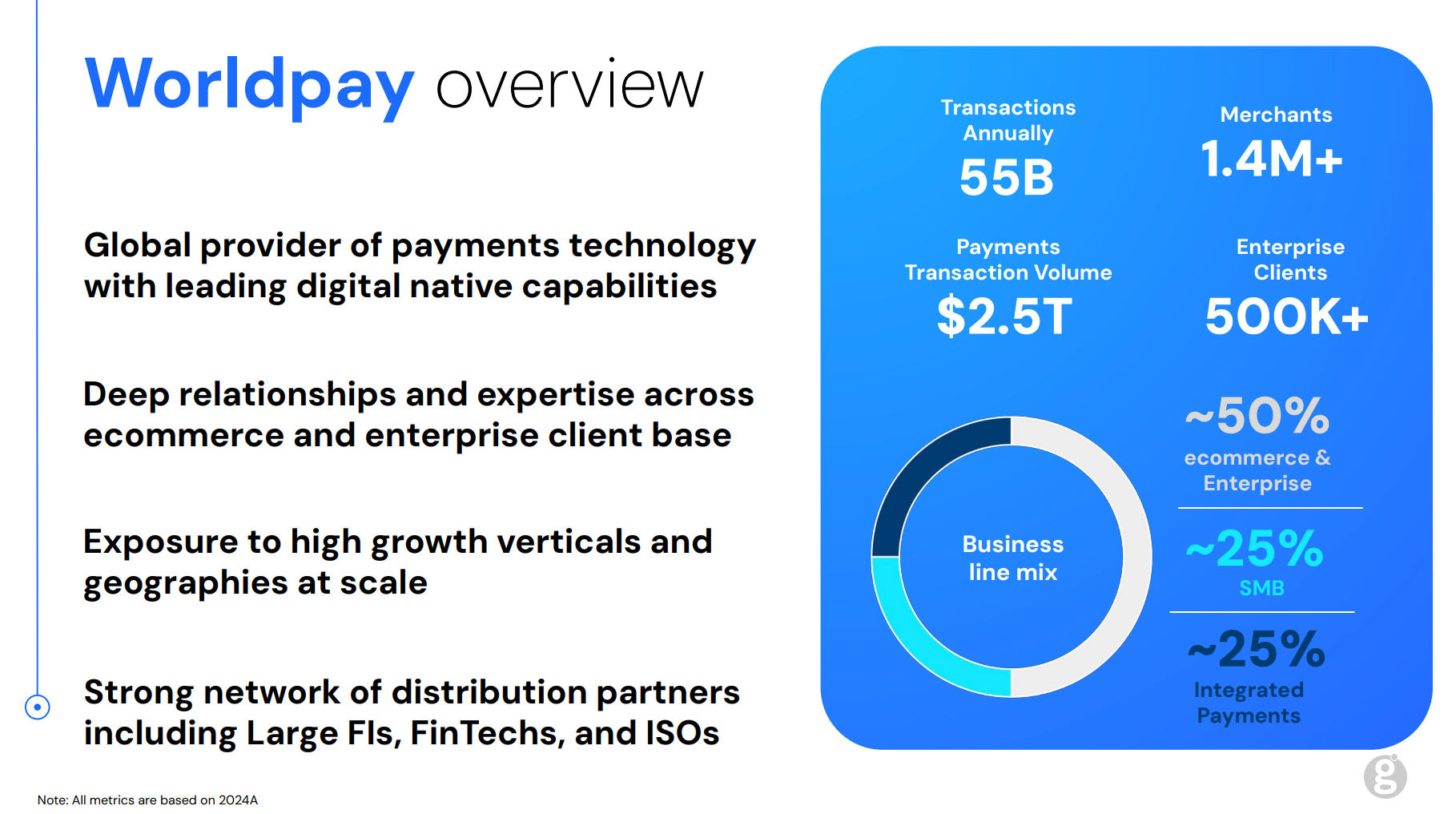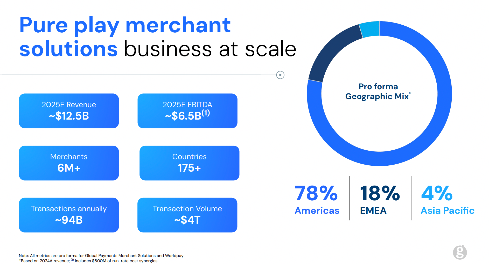The rationale for the deal is simple: combining Worldpay’s enterprise clients and e-commerce strength with Global Payments’ SMB expertise to create one of the largest merchant acquirers in the world. The combined business will process $3.7 trillion in payments annually, comparable to Fiserv’s (NYSE: FI) $4 trillion and ahead of JPMorgan Payments' $2.6 trillion. For reference, Adyen (AMS: ADYEN) and Stripe processed $1.4 trillion each in 2024.