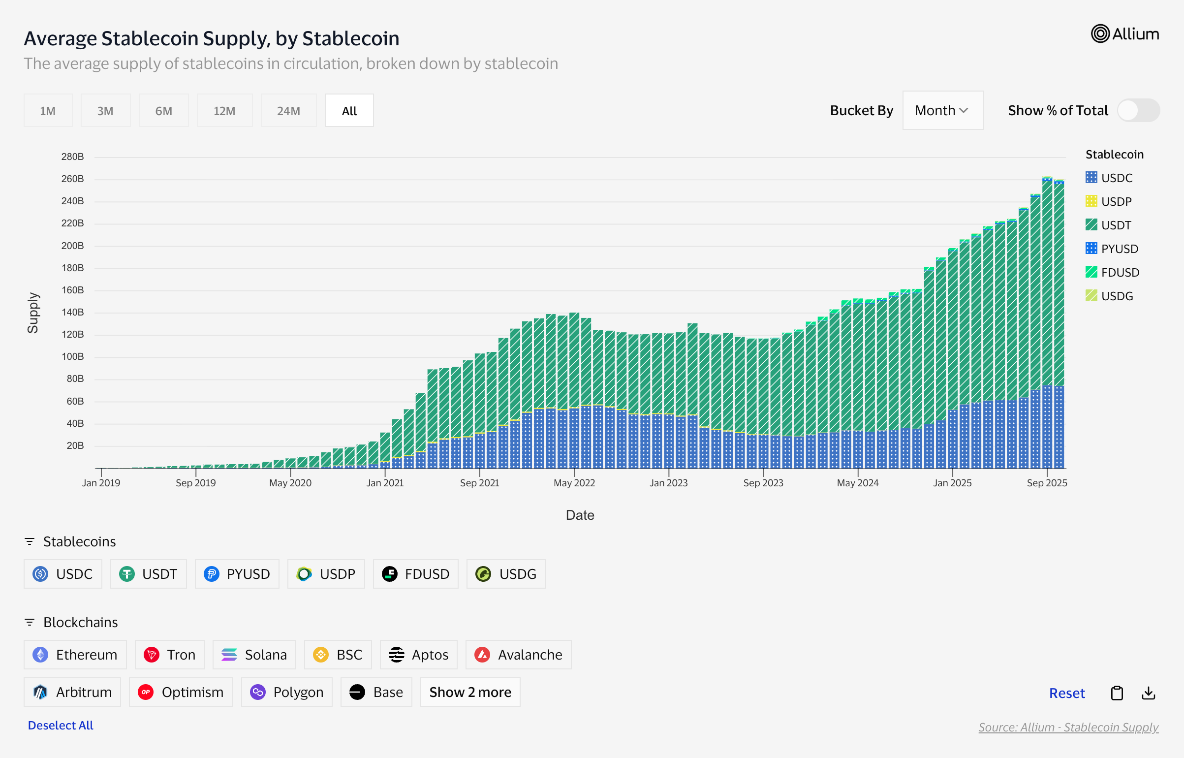 Stablecoins are taking over money movement: In Q3, Stripe and Paradigm spun out Tempo, an L1 blockchain for global stablecoin movement; FIS and Zepz joined forces with Circle to launch support for USDC transactions, and incumbents like Citi, Western Union, Amex, EWS, and Franklin Templeton are all reportedly exploring the launch of their own stables to speed up financial flows.