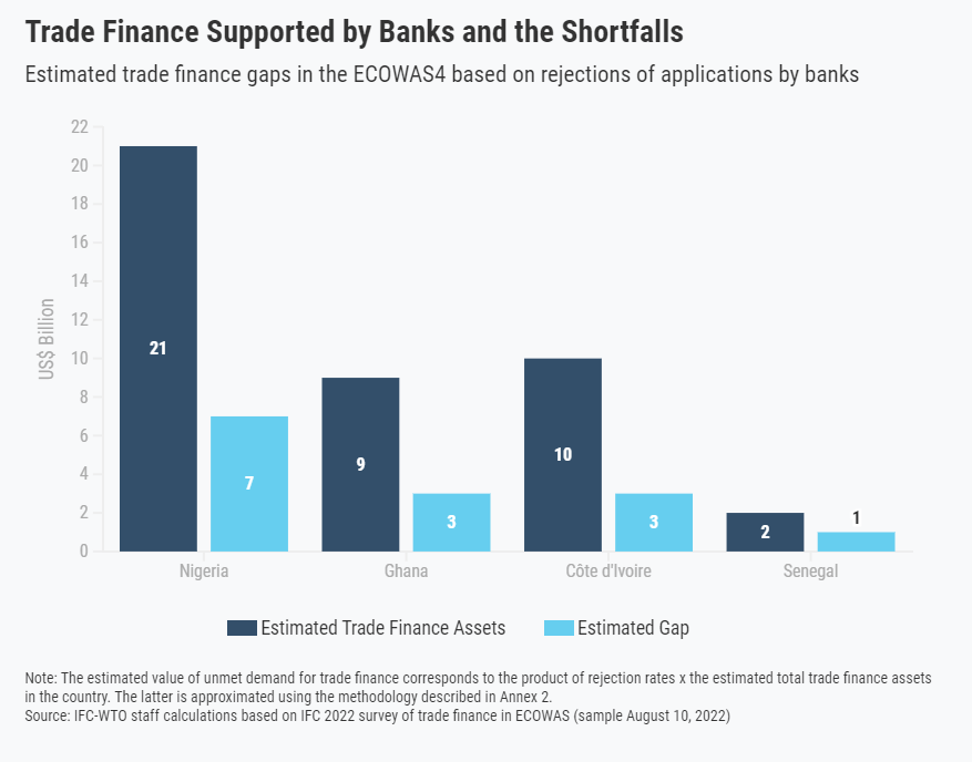 Estimated trade finance gaps in the ECOWAS based on rejections of applications by banks.