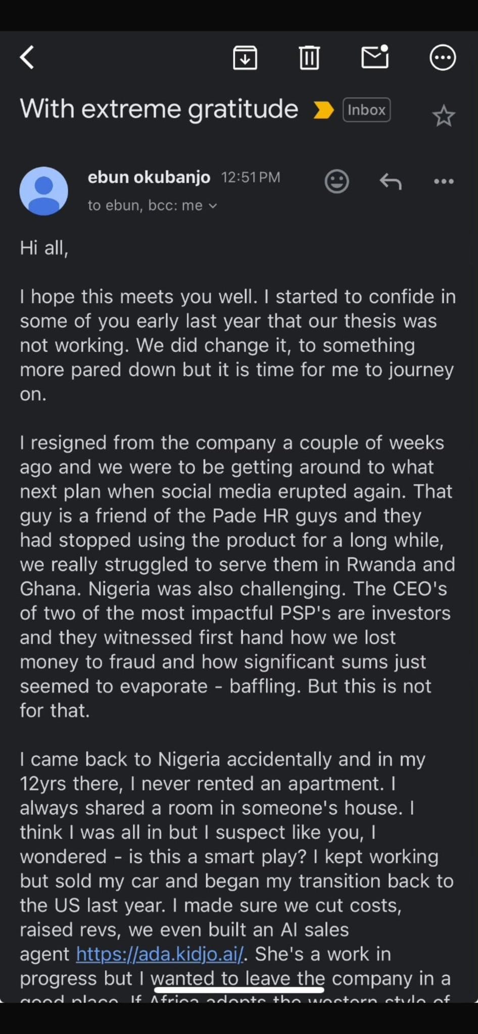 Leaked Bento’s CEO resignation email