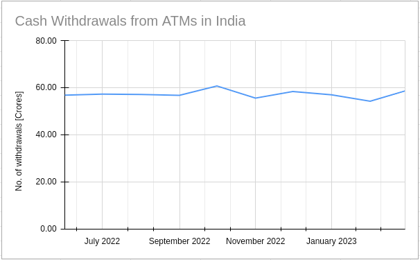 "ATM cash withdrawals in India have been flatlining at 60 crore transactions per month. Will digital payments make ATMs redundant?" Source