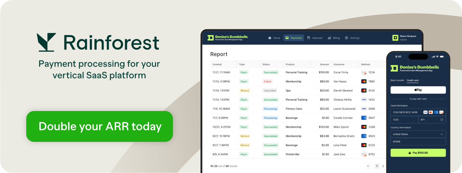 Vertical SaaS companies can double top-line revenue by adding payments, but most payment providers aren’t optimized for truly embedded payments. Rainforest helps software companies drive payment volume and revenue with high-touch support, superior merchant experience, and platform-friendly terms. Find out if you’re missing out on payments revenue