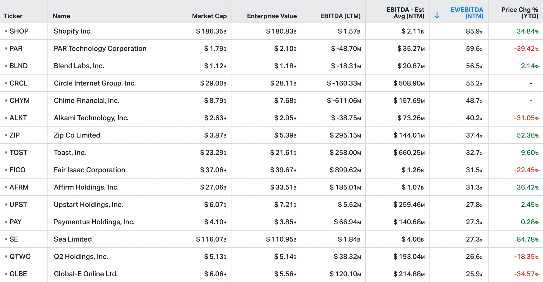 Highest Enterprise Value / EBITDA multiples