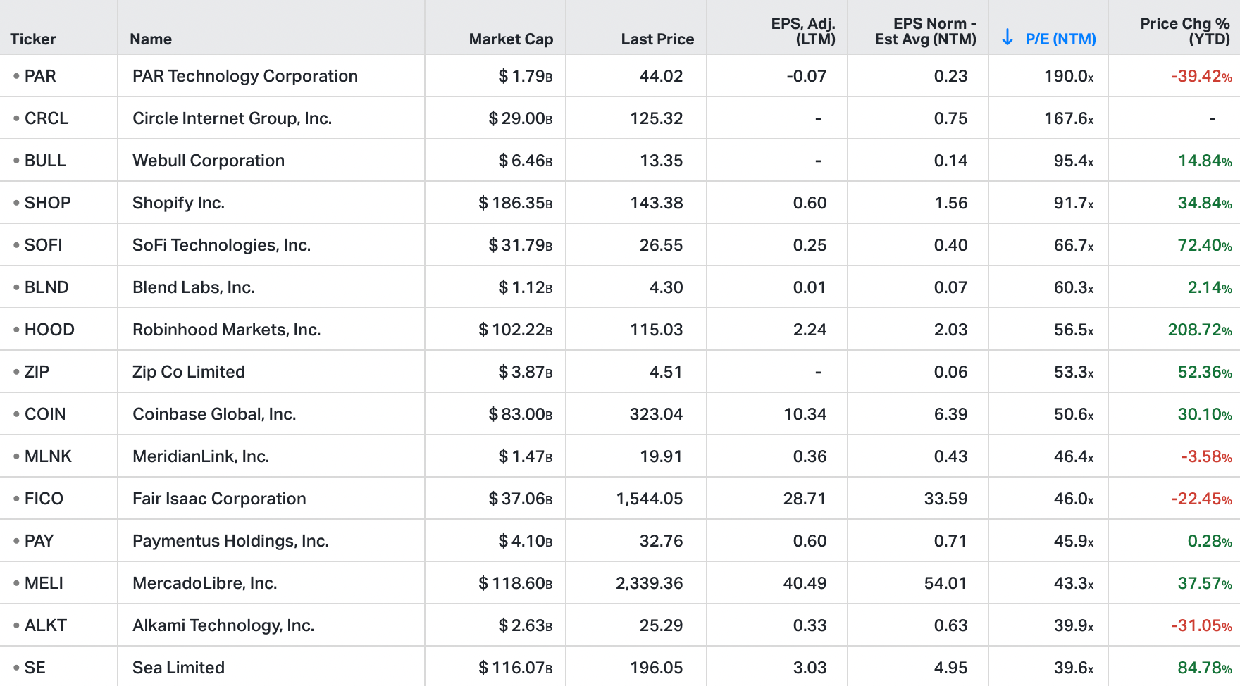 Highest Price / Earnings multiples