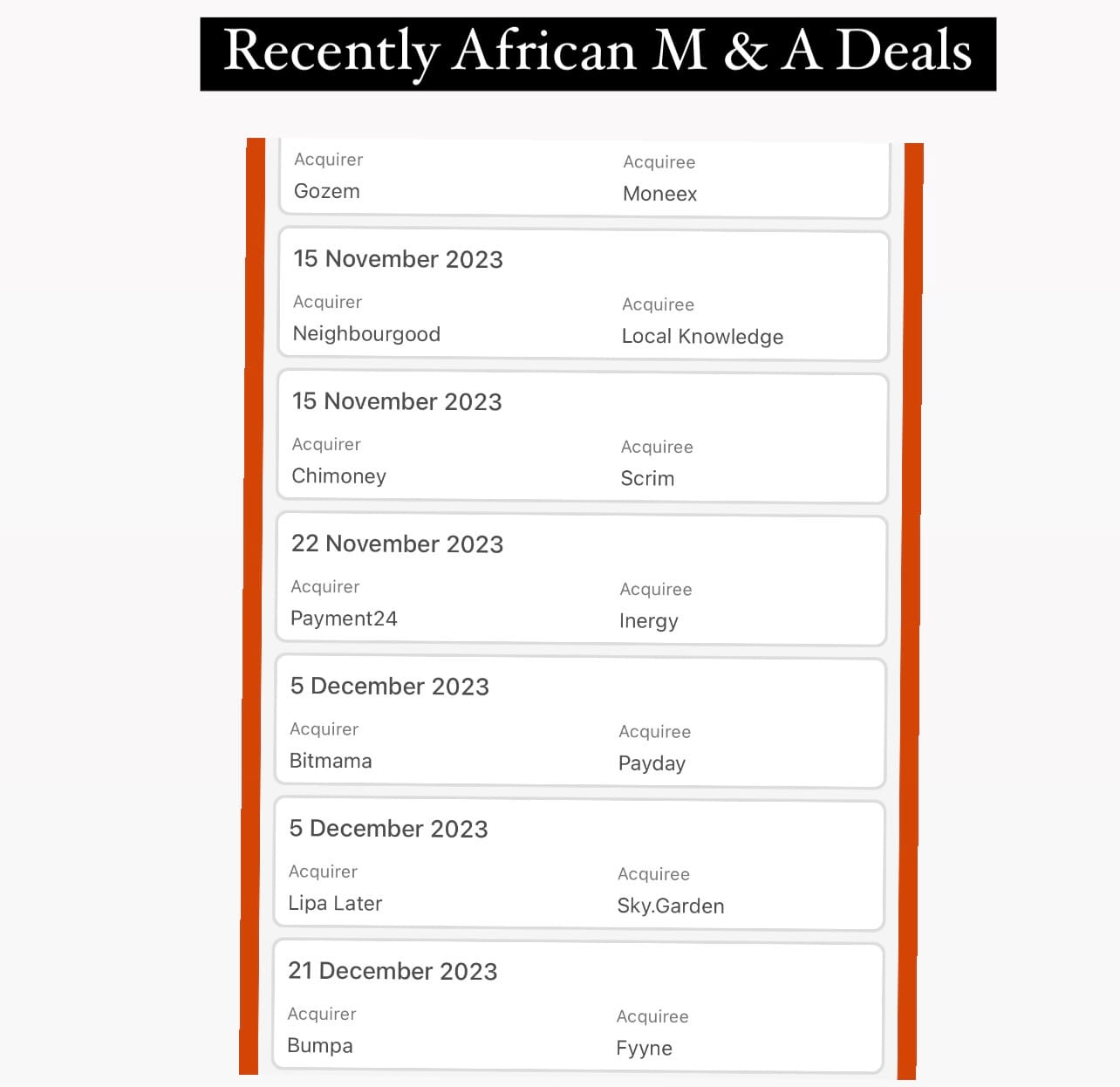• Nigerian credit-led Fintech FairMoney acquired PayForce.The transaction was a cash and stock deal in the range of $15 million to $20 million.