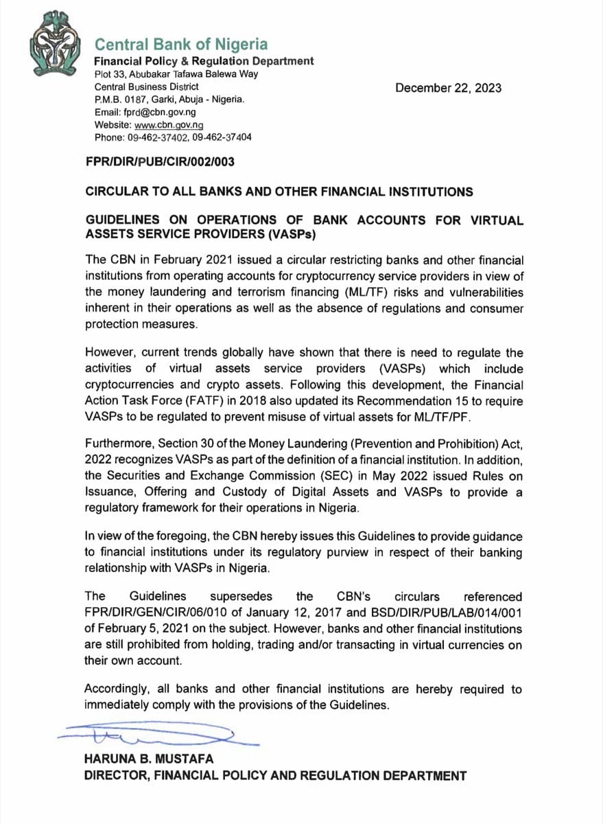 • The Central Bank of the largest populated African country removed restrictions on cryptocurrency transactions.