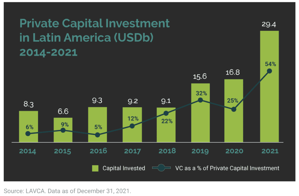 According to the Association for Private Capital Investment in Latin America (LAVCA), crypto VC investments in the region grew almost tenfold last year to $653 million.  Consumer-facing exchanges and trading platforms, such as Bitso, Mercado Bitcoin, and Ripio, received the most investment, at $607 million.