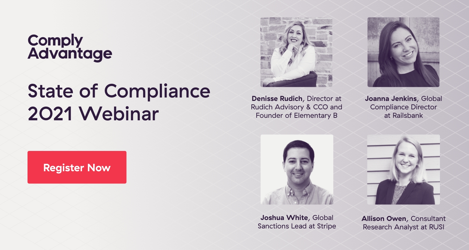 On November 11th join global compliance leaders from Stripe, Railsbank and the Royal United Services Institute to discuss all the latest fintech and regtech trends. Sign up here!