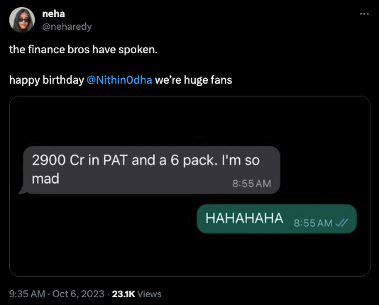 3. Groww, a wealth management startup, generated INR 1,294cr ($ 158mm) in total revenue in FY23 (ended Mar, 2023), growing 252% YoY with INR 73cr ($ 9mm) in net profit.