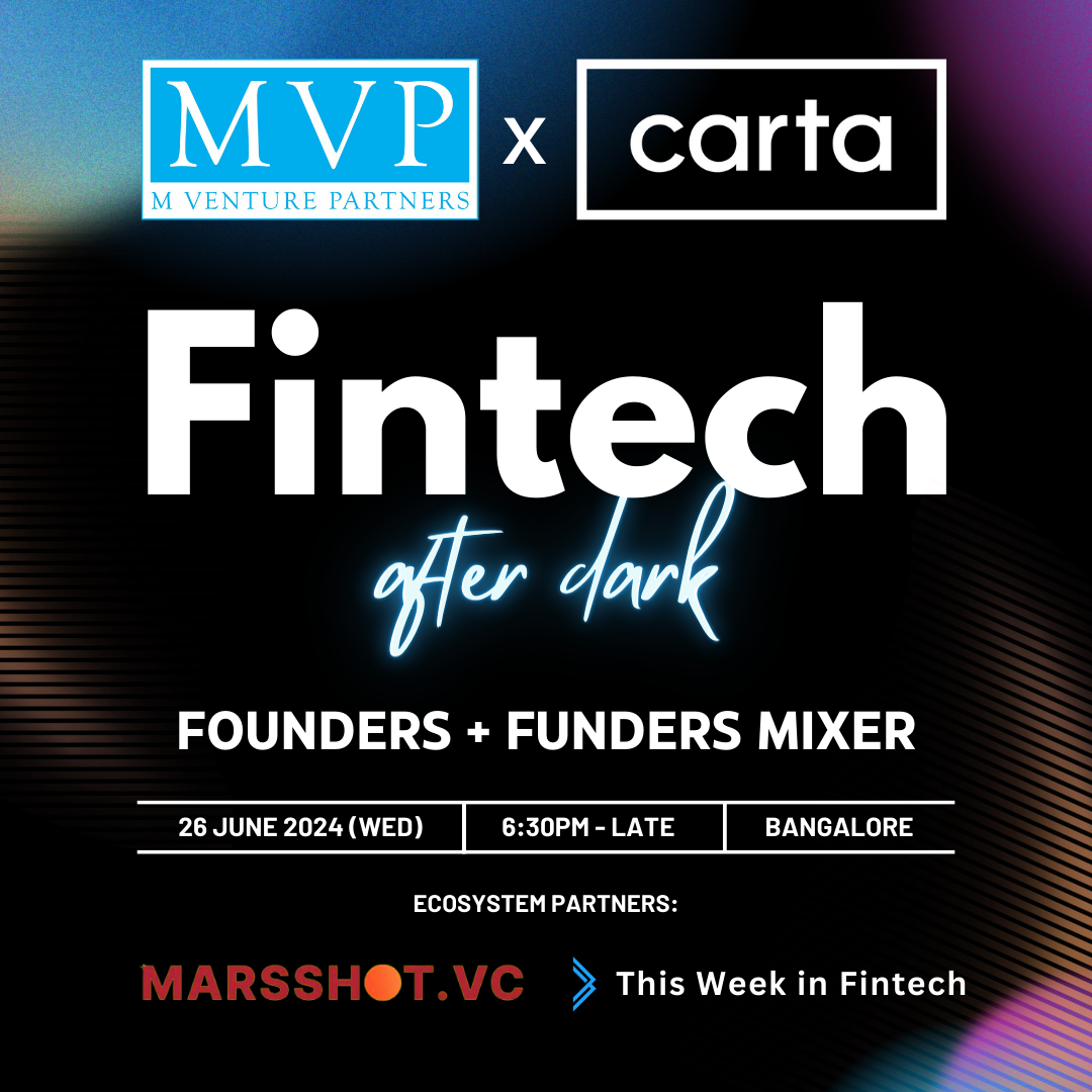 We've partnered with M Venture Partners and Carta to host a Bangalore Fintech After Dark meetup. We're excited to host the fintech community in Bangalore. Details below:
