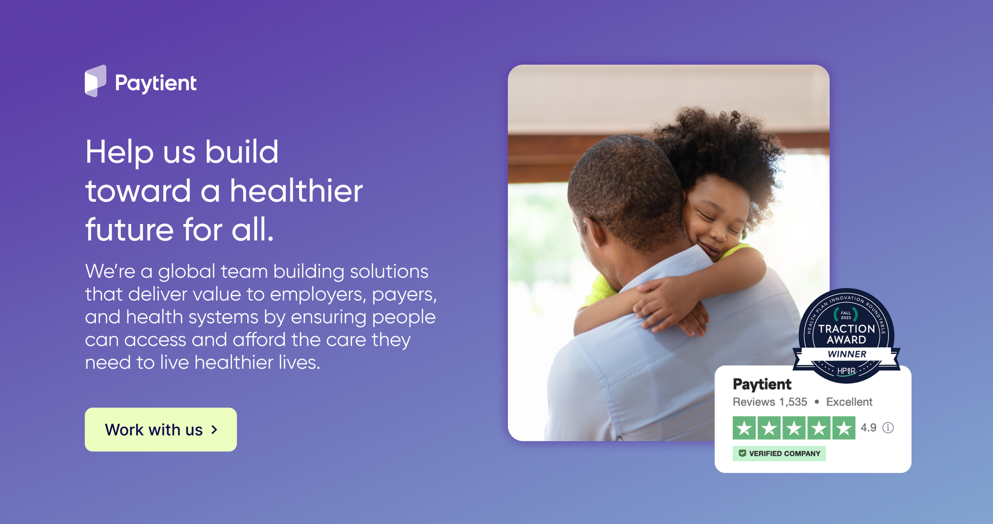 Paytient partners with employers and health plans to ensure people can more easily access and afford care. If our mission resonates with you, let's talk!