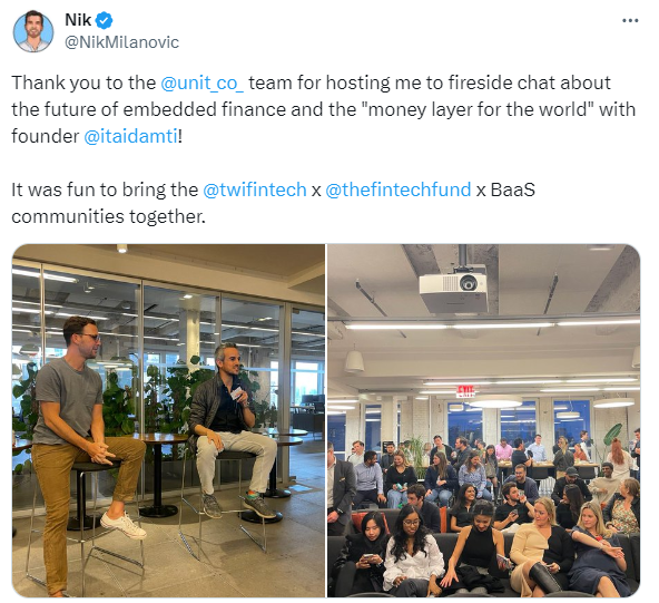 đź—˝ It's been amazing seeing so much of the fintech community in town for New York fintech week.