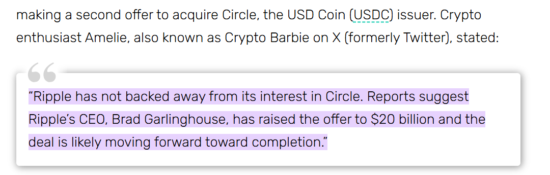 A surprising story dropped this week that crypto issuer Ripple, issuer of the XRP token with a $129 billion market cap, offered to buy rival stablecoin issuer Circle for a price of $4-5 billion, which Circle rejected as too low. Circle previously attempted to go public via SPAC in 2022 at a $9 billion valuation, and has grown since then.