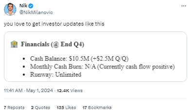 • Altruist, a wealth management-as-a-service platform that helps smaller advisories scale their businesses, raised $169 million and increased revenue by 550% in 2023 with 3x AUM growth.