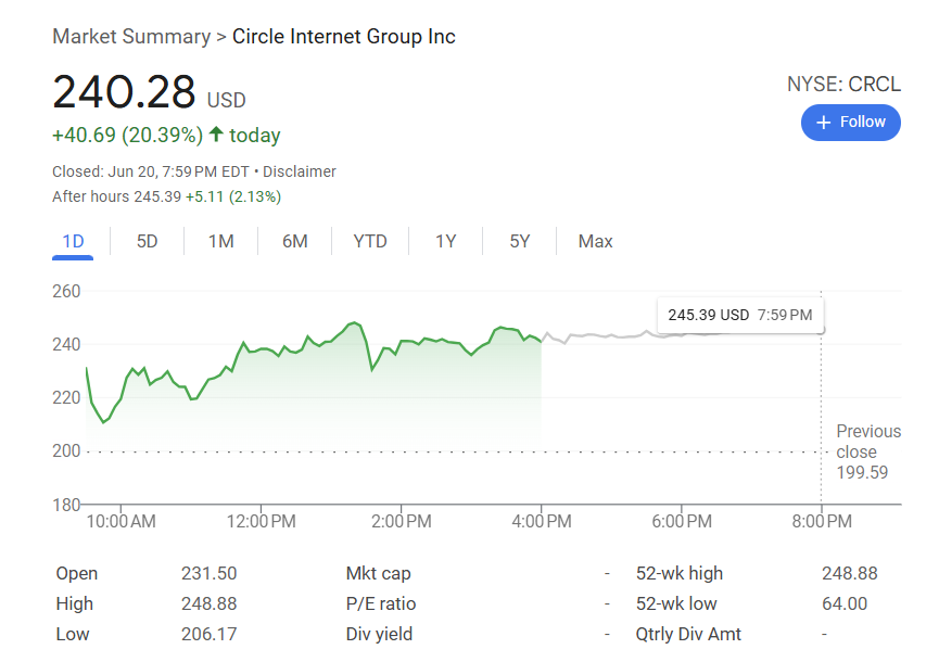 And if you needed any more validation for stablecoins, Circle stock is up 500%+ since IPO, with a $58 billion market cap: