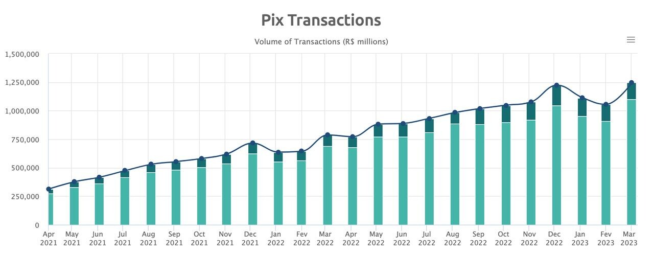 More than 80% of Brazil’s adult population has already made transactions with PIX; in March $249 billion worth of transactions were processed through PIX and consumers in Brazil are expected to make around 51.8 transactions per month by 2027 (Source and more about PIX)