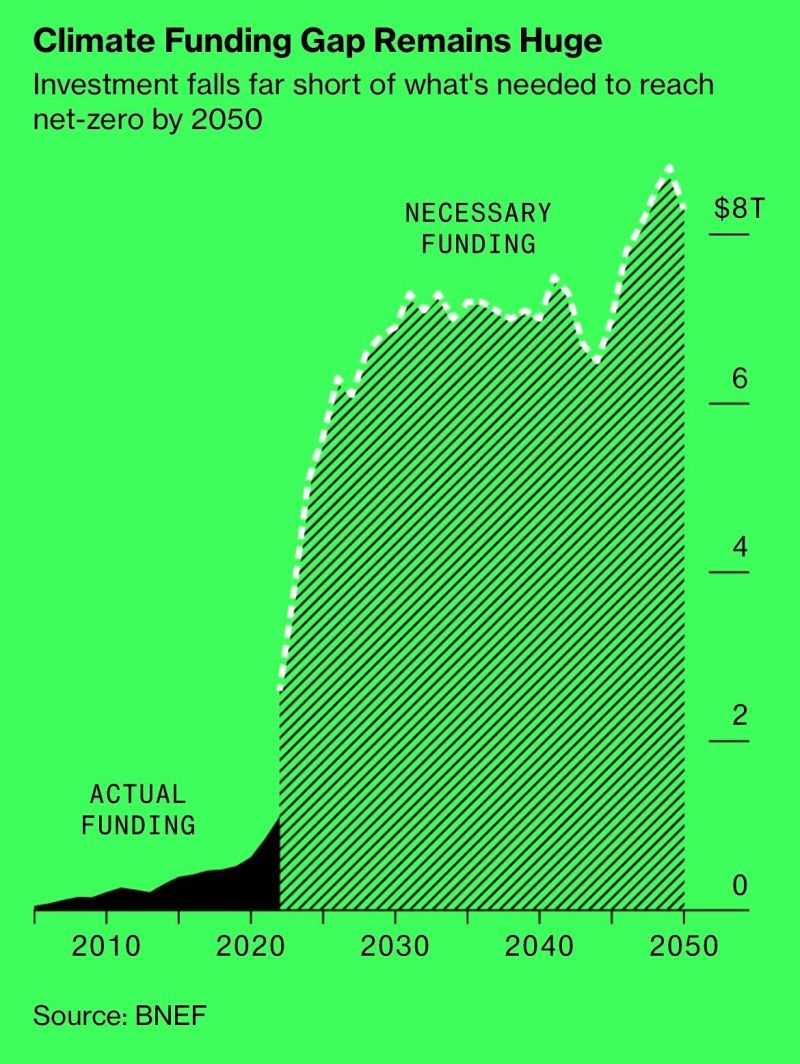 📉 Only about 16% of climate finance needs are currently being met, leaving a formidable gap to achieving net-zero emissions by 2050.