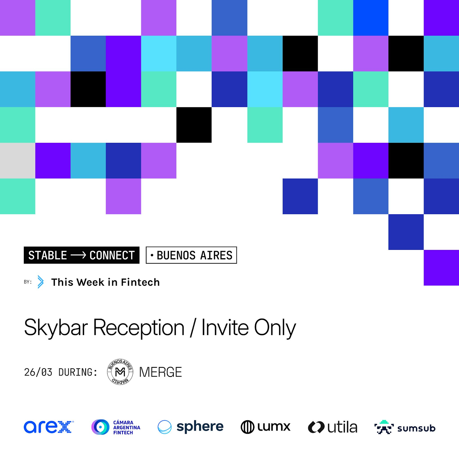 Wednesday, March 26 Stable Connect: Skybar Reception by TWIF, Sphere, Utila, Lumx, Arex and Sumsub Partnered with Merge Buenos Aires & Cámara Argentina Fintech
